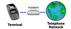 POS terminals contain an embedded analog dial-up modem which operates through a 2-wire, analog voice-grade telephone line. Upon obtaining all required information, the POS terminal initializes the embedded modem and dials the appropriate number. Once the call is answered by the host, the two sides must negotiate parameters and synchronize their modems, in what is called the “hand-shaking” process.