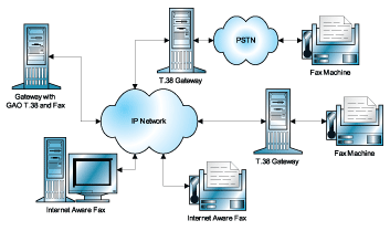 T.38 is a standard by International Telecommunication Union (ITU) for real-time fax communication over IP networks. Under the T.38 protocol, fax signals and data from the local fax terminal are packed as Internet Fax Protocol (IFP) packets at the local gateway to be sent over the IP network. The gateway at the remote end of the IP network, unpacks the IFP payload relayed over network and either regenerates the fax signals for transmission to the remote fax machine, or directly processes the signals as an Internet Aware Fax (IAF).